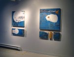 This second series creates a fictitious narrative that examines communication as a visual element. Thought bubbles and abstract interventions are mixed with the low relief figuration in order to suggest a sequential reading of the polyptychs.