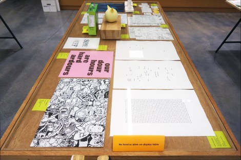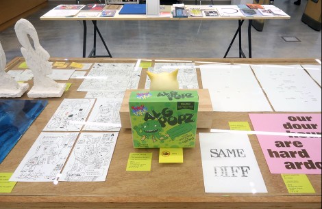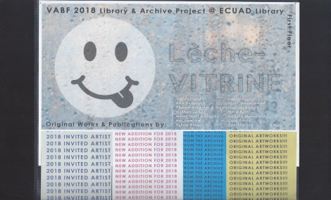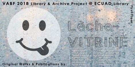You’ll find here included a visual archive of the publications presented during the annual Vancouver Art Book Fair, 2018, on the first floor of the ECUAD Library. These publications were accompanied by original art provided on loan by the invited artists, and a few photographs of the installation can be found below.